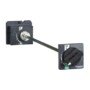LV429338 extended rotary handle, ComPact NSX 100/160/250, black handle, shaft length 185 to 600 mm, IP55. Suitable for isolation and it is used for standard applications. It maintains the access to trip unit settings and to the push to trip button. It is equipped with a standard black handle. There is an indication of the three device positions O (OFF), I (ON) and tripped. This extended version makes possible to operate devices installed at back of switchboards, from the switchboard front. The distance between the back of the circuit breaker and the switchboard door is from 185mm to 600mm. The degrees of protection are IP55 and IK08.